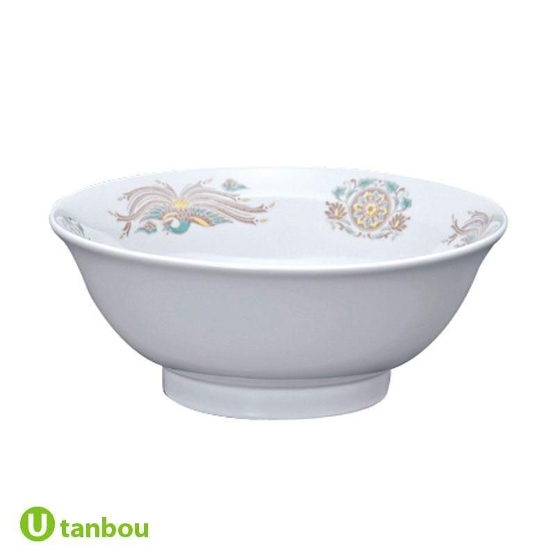 この商品に名入れをご希望の場合は、「お問い合わせ・見積り依頼」から個数などの必要事項をご入力いただき、お問い合わせまたは見積り依頼を送信してください。後日、お見積りを連絡いたします。白地に鳳凰の模様が豪華などんぶり。持ちやすい形です。