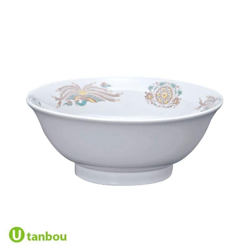 この商品に名入れをご希望の場合は、「お問い合わせ・見積り依頼」から個数などの必要事項をご入力いただき、お問い合わせまたは見積り依頼を送信してください。後日、お見積りを連絡いたします。白地に鳳凰の模様が豪華などんぶり。