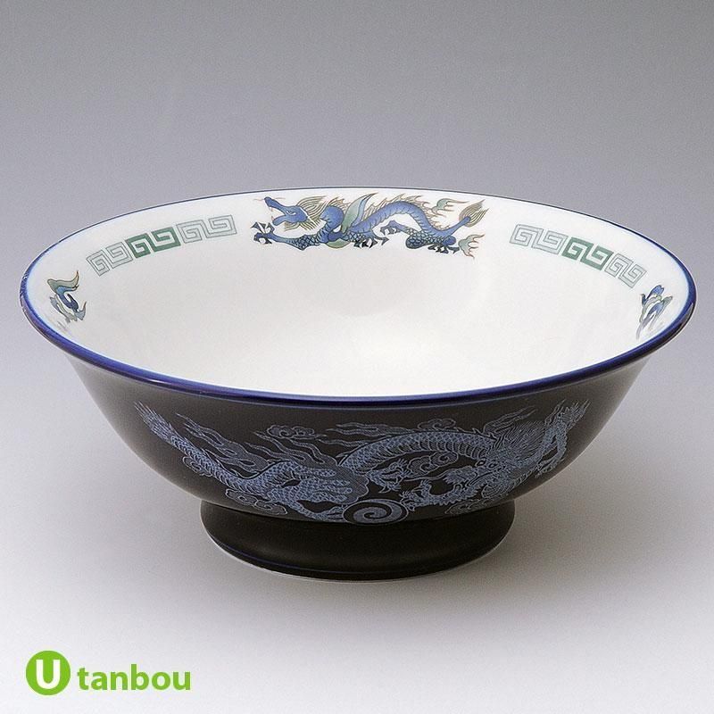 白地に鮮やかなブルーの龍画映えるどんぶり