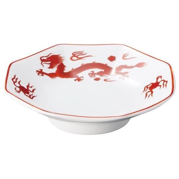 【サイズ別/約19cm,中華食器,八角・高台皿,中皿,レッド】