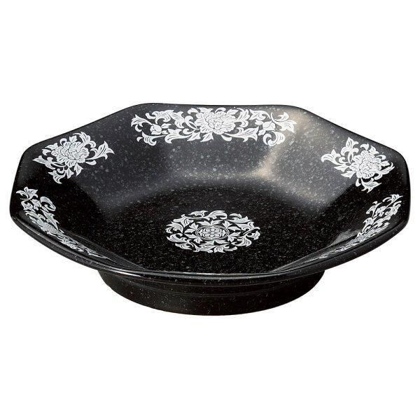 黒白盛牡丹 八角高台皿 中華食器 八角・高台皿 中皿 ブラック系 日本製 美濃焼 業務用
