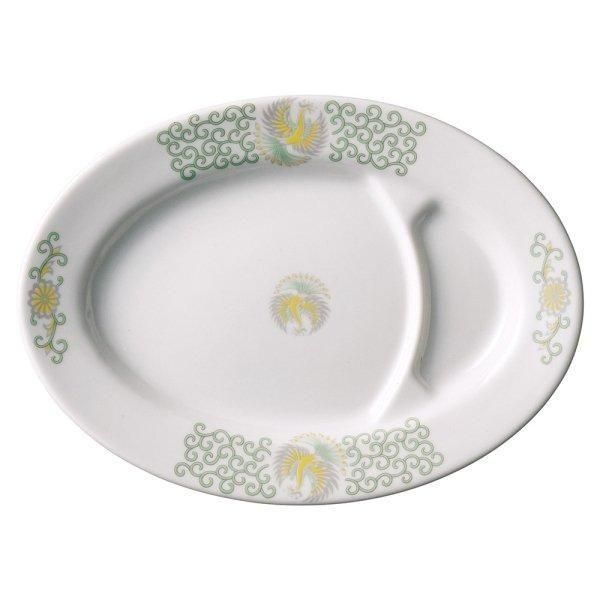 ヒスイ 9吋仕切皿 中華食器 仕切皿 ギョウザ皿 中皿 グリーン系 日本製 美濃焼 業務用